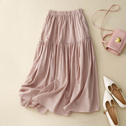 Damen Sommer mode Langer Baumwoll rock L bis XXL Elastische Taille mit Falten Casual Style Atmungsaktive und natürliche Taille