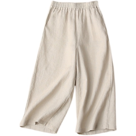 Pantaloni donna moda estiva a doppia gamba larga da M a XXL elastico in vita traspirante in cotone e lino stile Casual