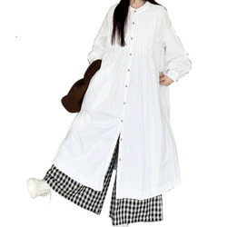Abito Casual da donna autunnale in cotone stile ampio stile camicia a pieghe taglia unica abito in tinta unita tessuto