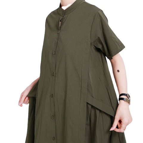Дизайнерское женское летнее модное платье миди с воротником-стойкой и коротким рукавом, дышащее хлопковое льняное повседневное длинное платье на пуговицах